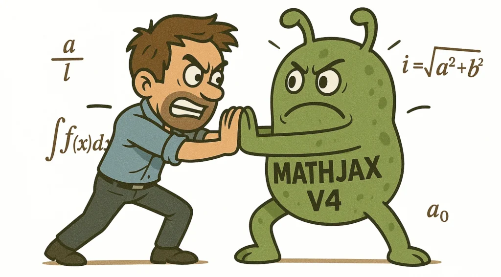 This week, I descended into the underworld of MathJax, armed with nothing but Next.js, TypeScript, and misplaced optimism. Spoiler: optimism didn’t last long. MathJax v4 threw over 55 unique errors at me — some hilarious, some infuriating, and some so weird I questioned whether my codebase was haunted.